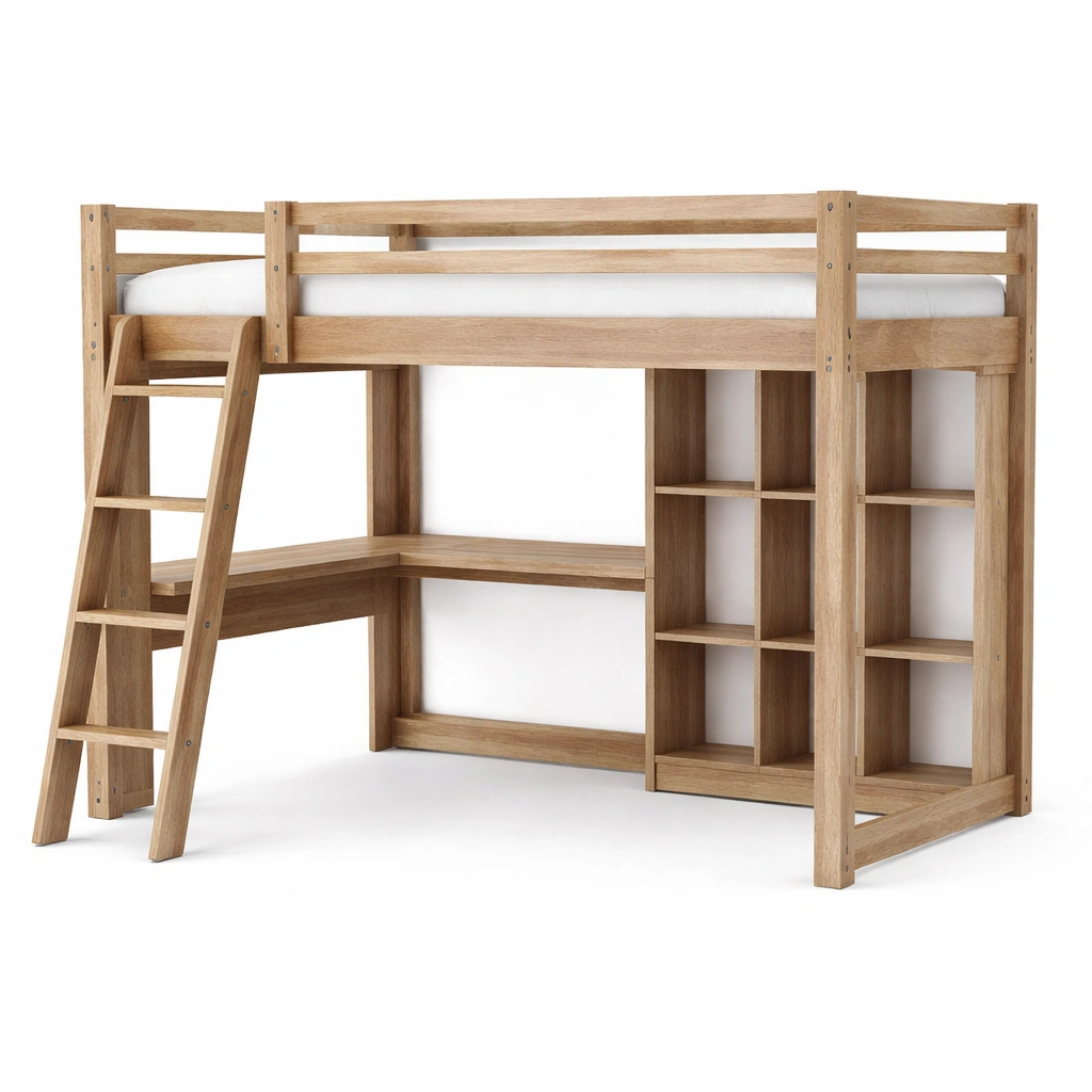 Funcionalidad principal: Litera con escritorio y estantes integrados