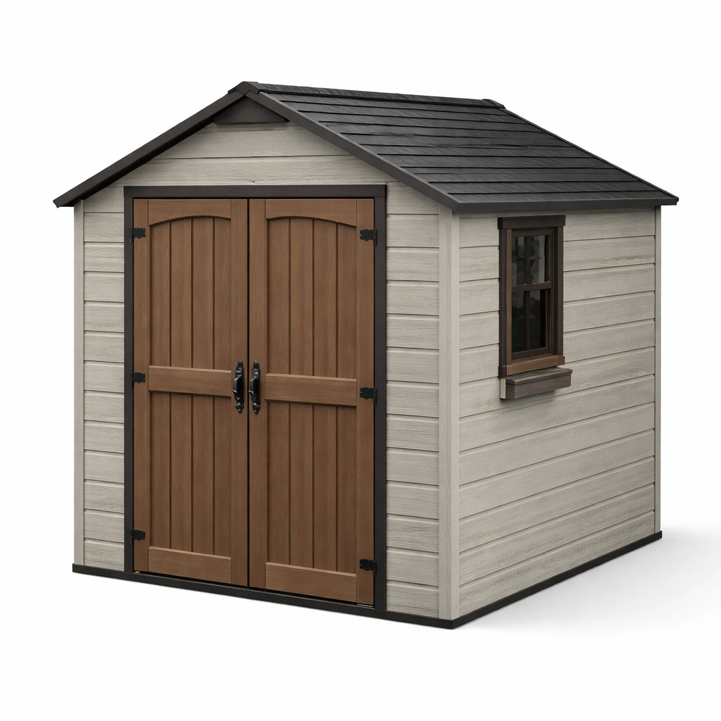Incluye techo a dos aguas, doble puerta y ventana lateral